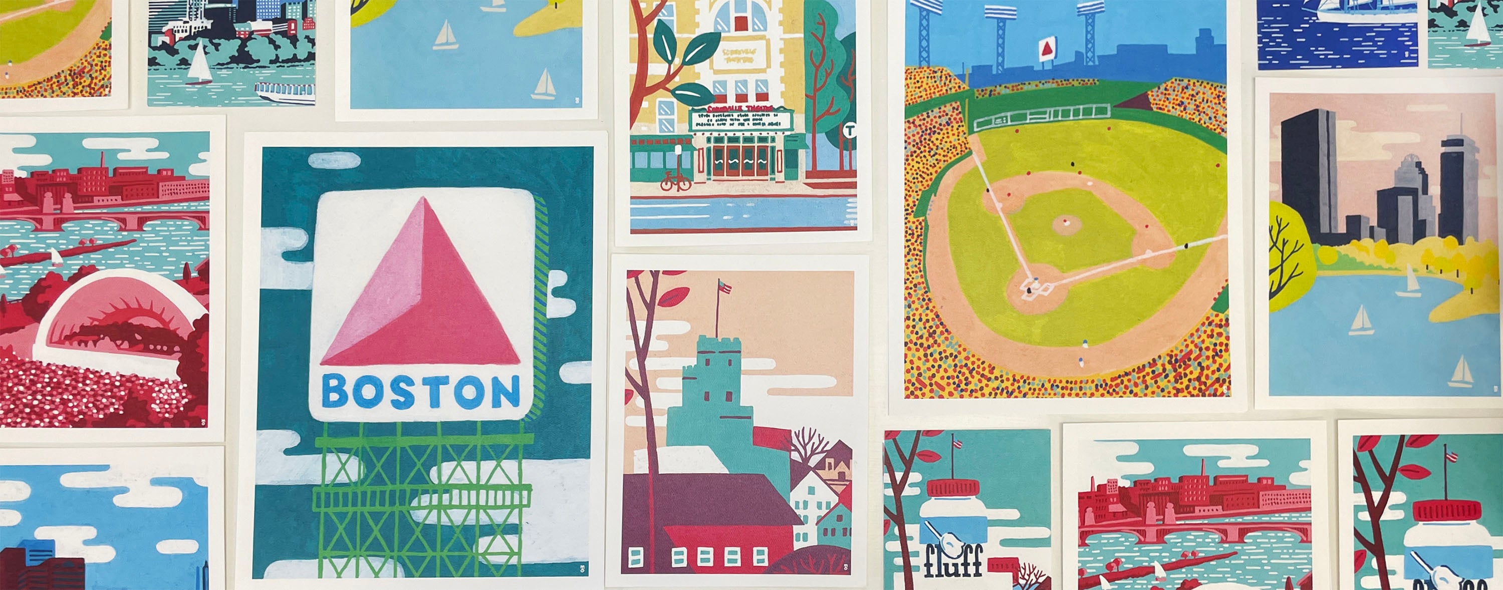 In addition to creating art prints that celebrate Boston, I also paint large-scale murals around the city. My mural work brings color and local pride to public spaces, reflecting the communities that inspire my art. If you're looking for a mural please get in contact.